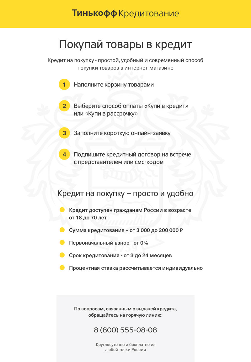 Вы можете оплатить наличными курьеру при доставке по г.Самара - Оплата через «КупиВкредит» («Тинькофф Банк»)