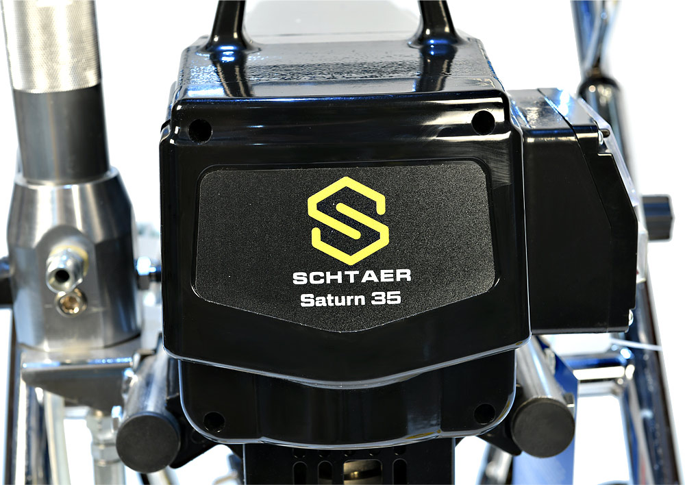 Schtaer Saturn 35 - оборудование для окраски под высоким давлением через окрасочный краскопульт безвоздушного распыления. Окрасочный агрегат безвоздушного распыления предназначен для использования на строительных площадках и промышленных предприятиях. Он применяется для распыления под большим давлением красок средней и высокой вязкости. таких как: огнезащитные краски, фасадные краски, водоэмульсионки, латексные и акриловые краски, грунтовки и эмали по металлу, эпоксидные материала, однокомпонентные краски и двухкомпонентные составы с большим временем жизни, краски и лаки по дереву. Окрасочный аппарат используют для покраски вязкими красками через один окрасочный пистолет, при распылении лакокрасочных материалов средней вязкости аппарат возможно использовать на два краскопульта. Окрасочный аппарат засасывает краску через специальный прямой заборник с фильтром с помощью поршневого электрического насоса. На выходе из насоса краска также фильтруется перед подачей на безвоздушный краскопульт.
