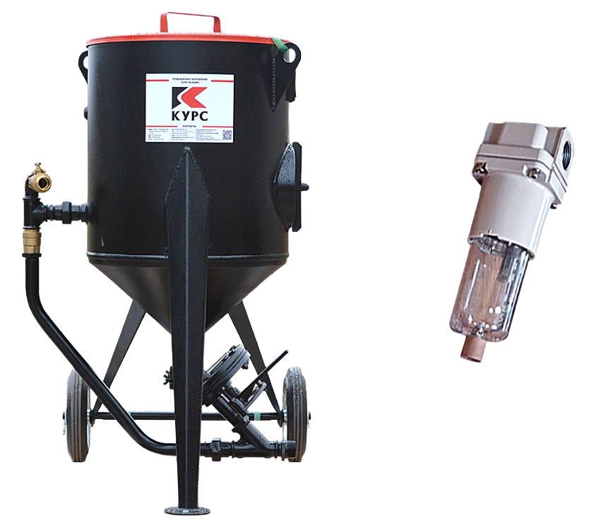 С пескоструйными «бочками» в начальной комплектации, с фильтром и с КПДУ мы рекомендуем использовать дозаторы для практичного дозирования расхода абразива двух типов: