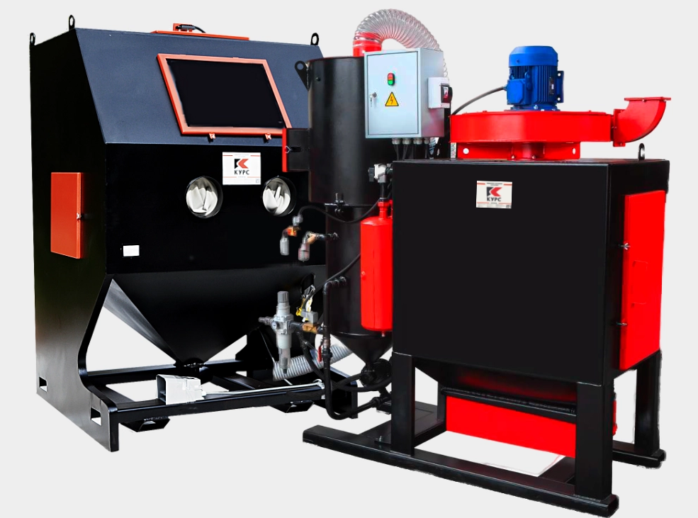 Дополнительная установка к камере, которая выполняет функцию очистки запыленного внутреннего пространства пескоструйной камеры, а также очистки, просеивания абразива от пыли, крупных примесей и подачи его под давлением в зону обработки. Фильтр улавливает пыль, мелкие частицы абразива. Благодаря фильтру и рекуператору в атмосферу подается уже очищенный воздух, а загруженный абразив может используется многократно и длительное время.Технические характеристики